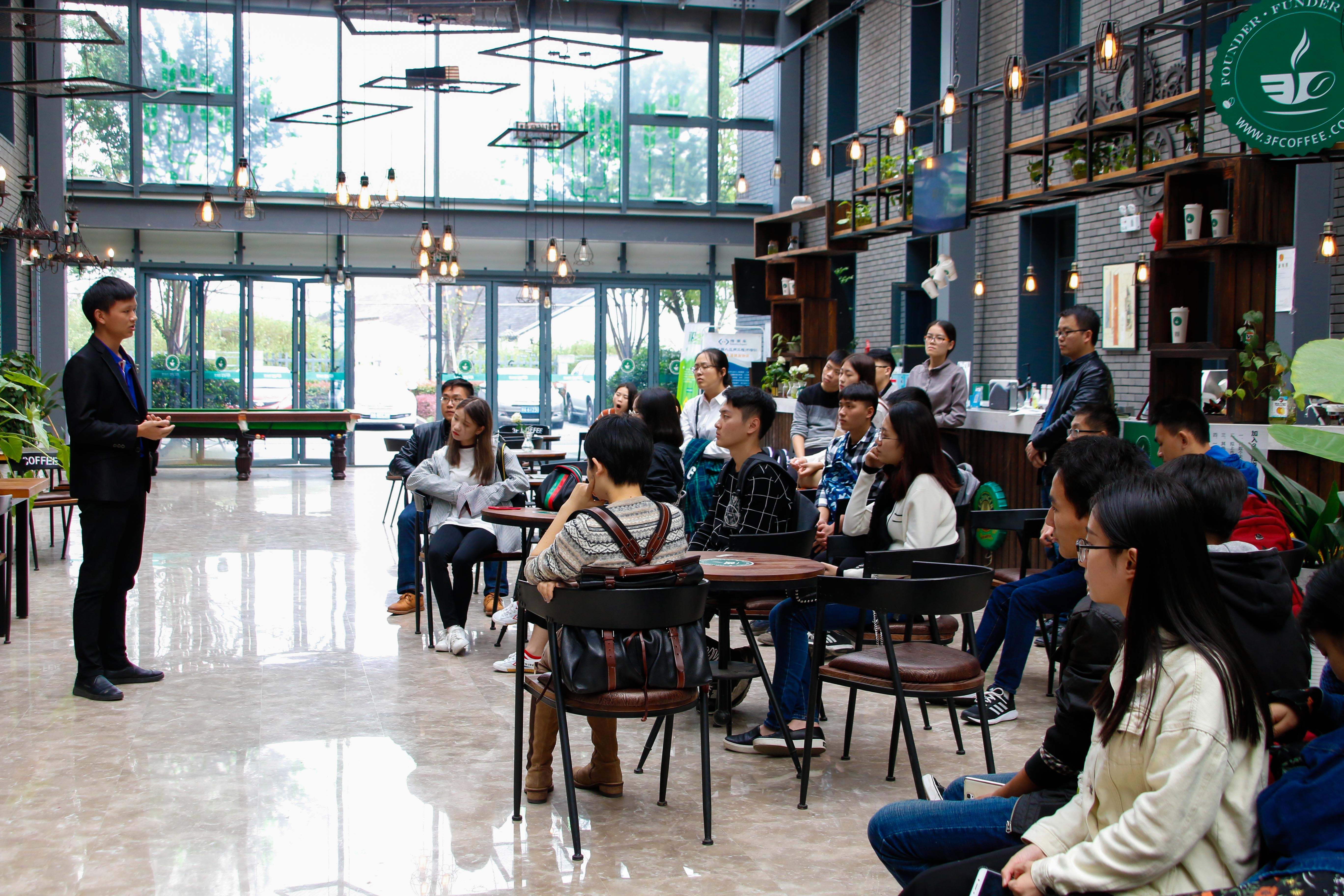 10月18日下午,博彩平台-全球最大的博彩平台 文化创意学院新生“专业领航”系列活动第三讲走进余杭区梦想小镇企业加速器,文化创意学院团委书记耿明峰、文创学生创客成长营30余名师生参加了本次活动。