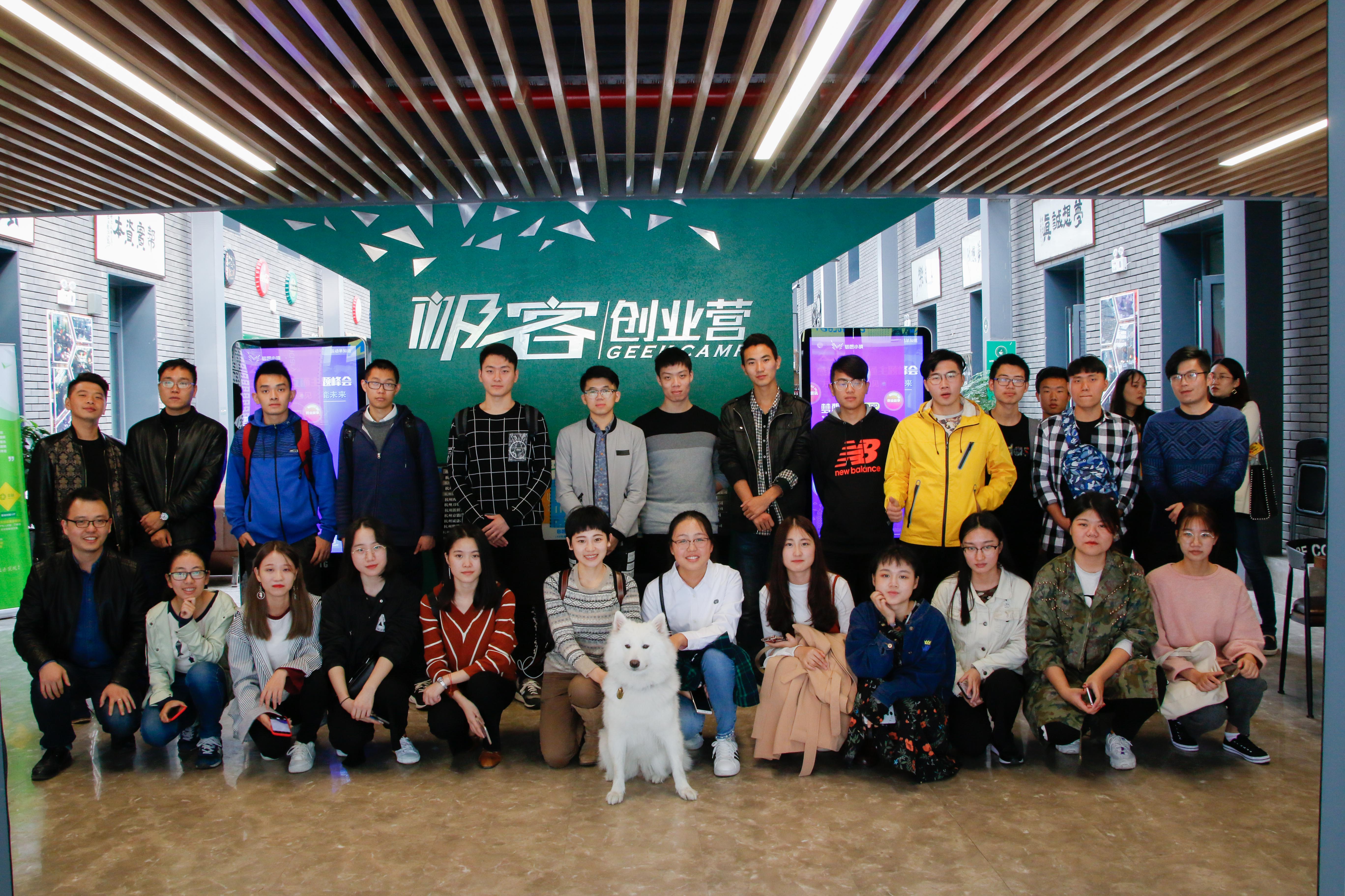 师生于极客加速器前合影留念