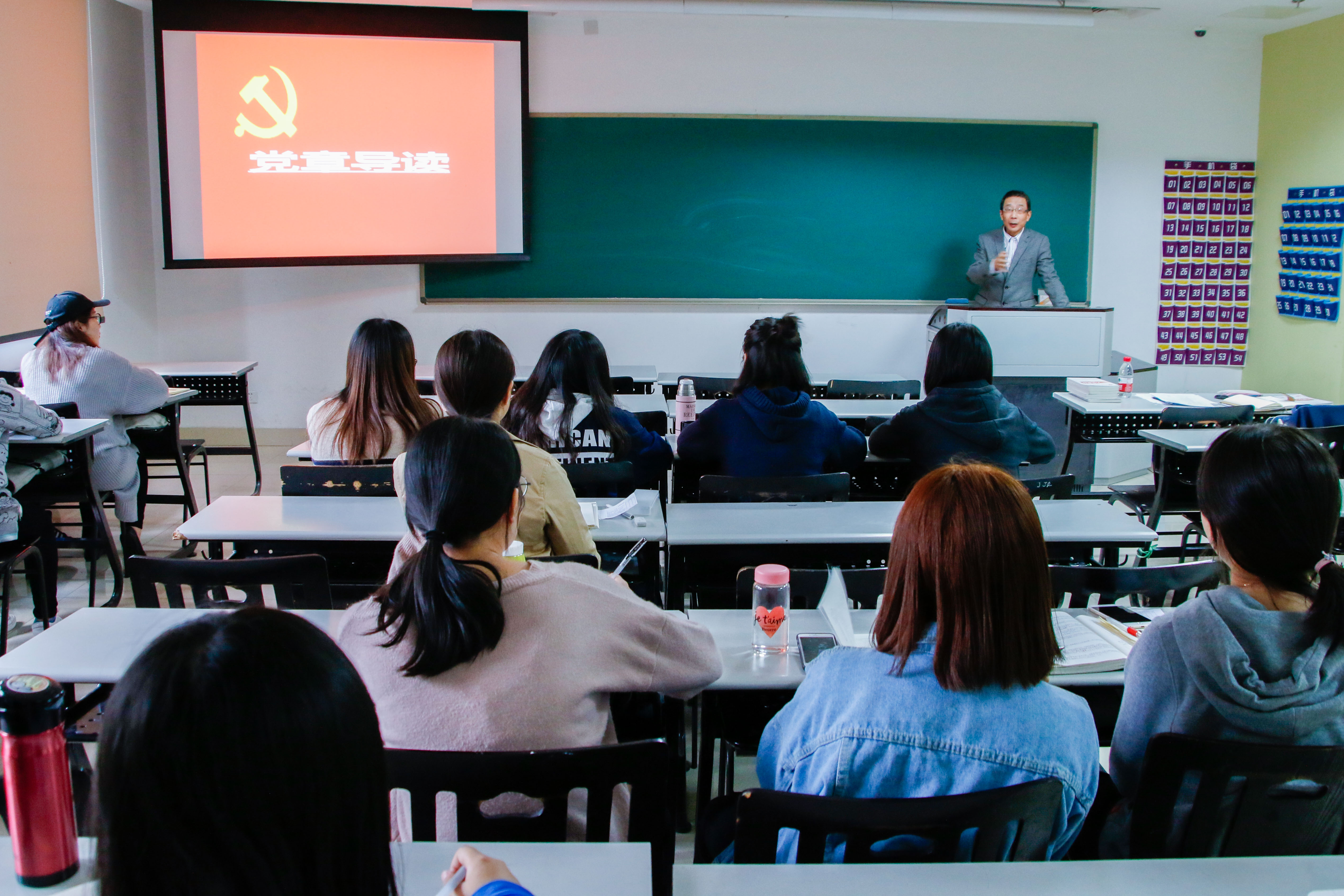 接着,由马克思主义学院冯群老师为本期培训人员上第一节专题党课。冯老师讲课内容丰富,从党的性质、党的宗旨、入党动机、党员权利与义务、思想入党等等方面结合实际展开课程,不断巩固扩充大家的知识理论,培训学员认真聆听并用心记下此次专题党课的主要内容和要求,在冯老师深入浅出的讲解下,全体培训人员对党有了更深层次的理解和认识。