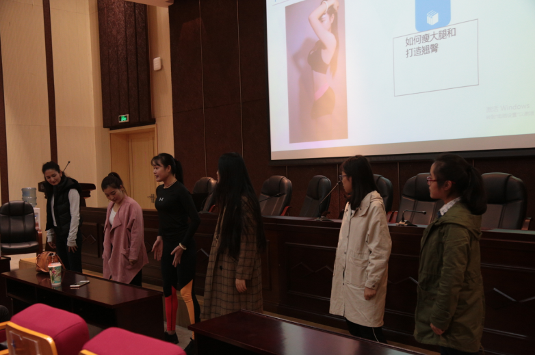 杭州铁核工作室教练姜南从健康减肥方法,如怎样避免极端减肥、错误减肥;从运动前的正确热身方法,避免运动受伤,局部健身正确方法,伤后恢复;从饮食习惯当中的少吃多餐、营养搭配、忌讳偏食等方面进行了健美和健康的详细阐述。随后,在健身教练的指导下,同学们进行了基本的健身动作训练。