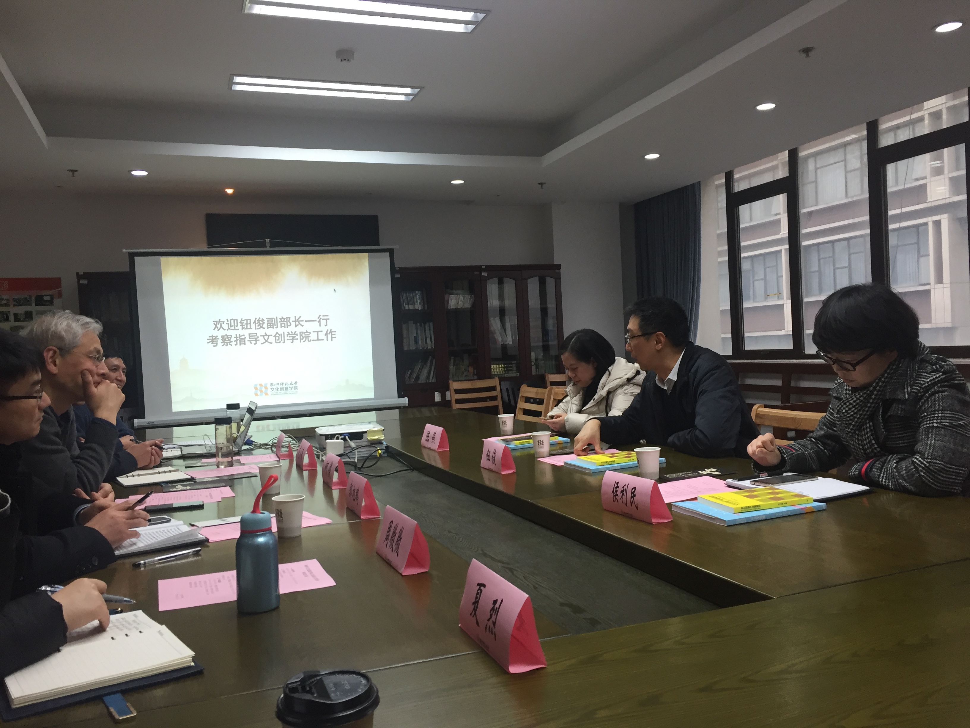 1月23日下午,杭州市委宣传部副部长钮俊一行三人来我校文创学院调研指导。何俊副校长参加调研座谈。