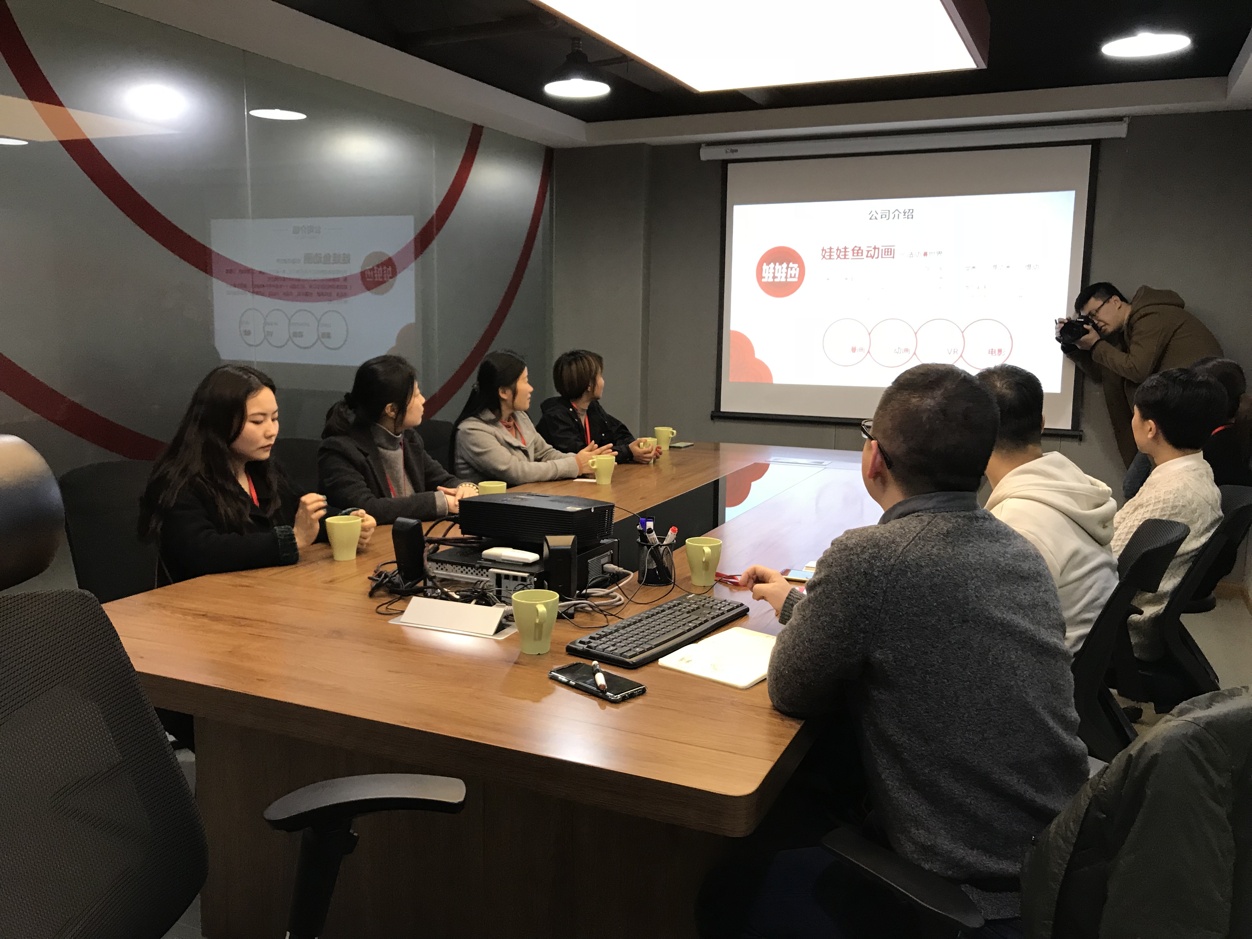 2018年3月22日下午,文创学院党总支副书记周微微带领就业辅导员周凤琴以及部分高年级学生走访了2013级优秀校友徐鹏所在的公司——杭州娃娃鱼动画设计有限公司。