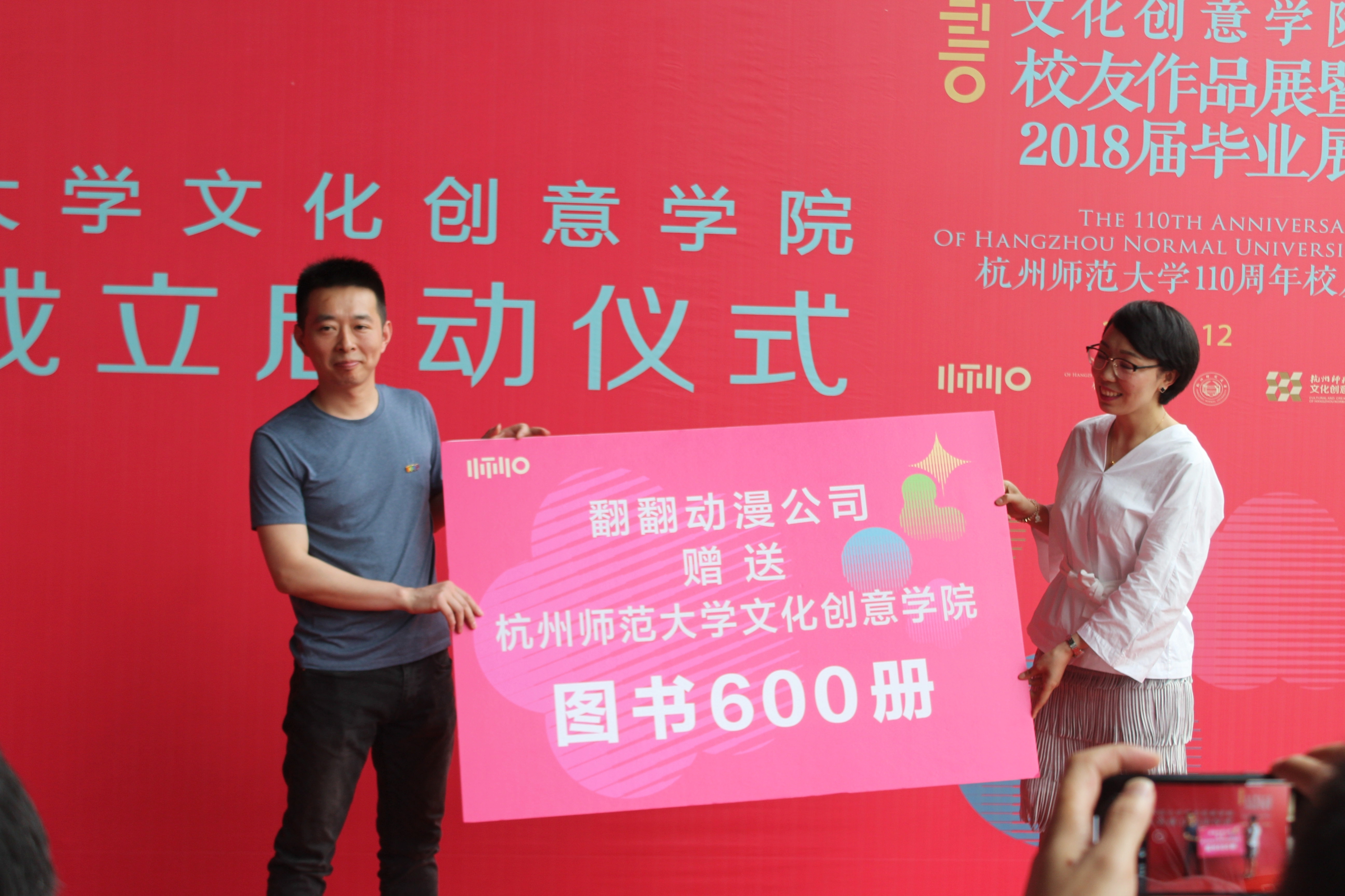 翻翻动漫行政负责人杨树云女士为支持学院培养文创产业人才,向学院表达敬意,捐赠动漫图书600册,并与学院代表陈孟伟老师进行了揭牌仪式。