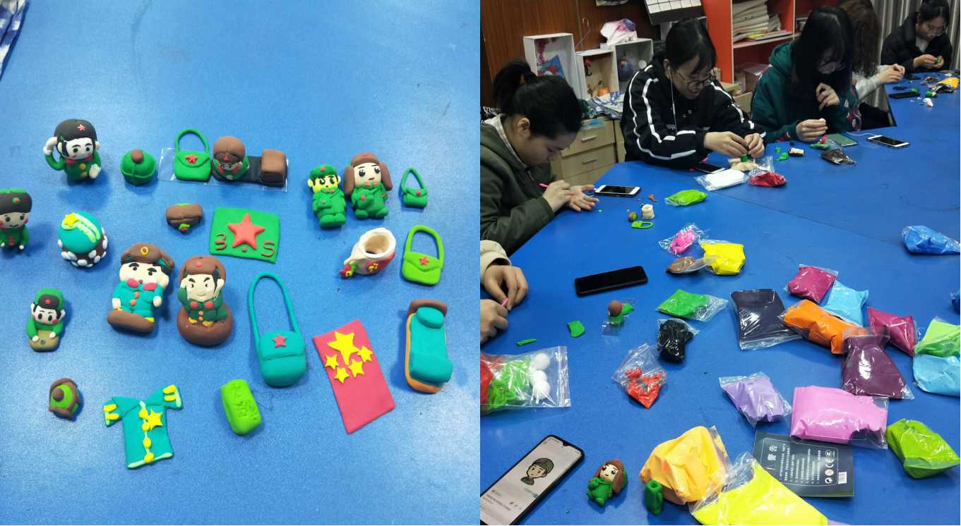本次志愿者们为同学们准备的手工材料是:各色的太空泥、各色的拼豆等。在活动过程中,大家分组讨论、用心制作、悉心听讲,在同学们一双双巧手下,原本坚固杂乱的拼豆变得生动有趣起来,原本一团毫无生气的太空泥变得活灵活现,一个个精美的工艺作品呈现在大家面前。