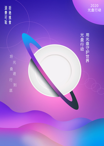 毕浚皓同学表示,作为一名文化创意学院的学生,我希望能通过自己的专业知识为光盘行动的宣传出一份力。我通过光盘的圆形联想到行星,将光盘作为主体放入行星的光环中。体现了用光盘行动来守护地球的意图。希望通过这张海报能提醒到大家粮食也是这个星球的重要资源,通过光盘行动来保护资源就是保护地球。用海报的形式揭示了光盘行动背后所具有的更加深远的意义。