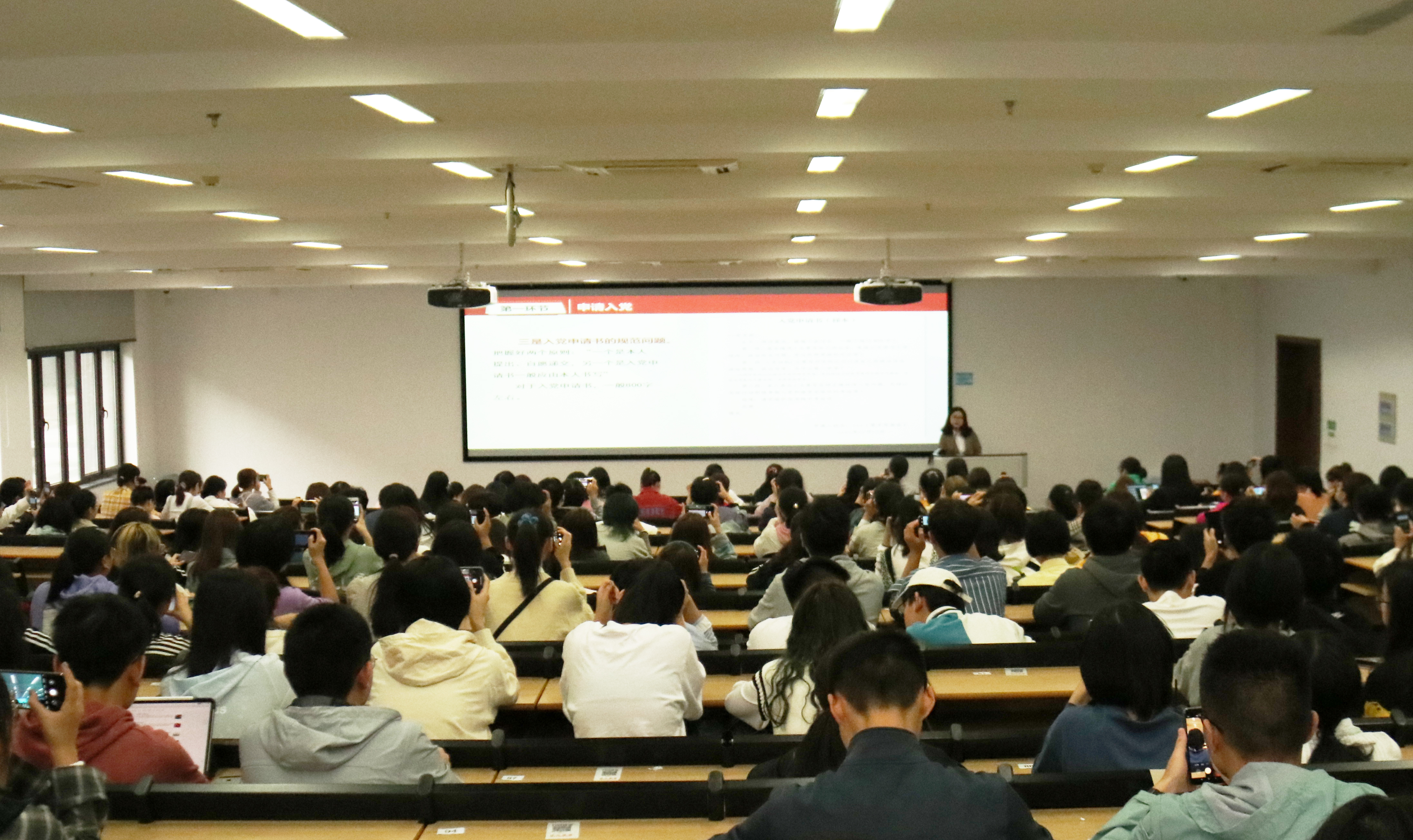 首先,朱老师向全体2020级新生介绍了有关党的基本知识以及具体的入党流程,强调入党首要的是端正入党动机,还向新生们展示了书写入党申请书的注意事项及常见错误,详细全面地讲解了入党申请的相关事项。同时,朱老师希望同学们积极向党组织递交入党申请书,加入到“学习强国”app的学习队伍中去,用好指尖上的思想加油站,希望同学们不仅是想从心底想要加入中国共产党,更是要到实践行动的贯彻,从而争取早日加入党组织。