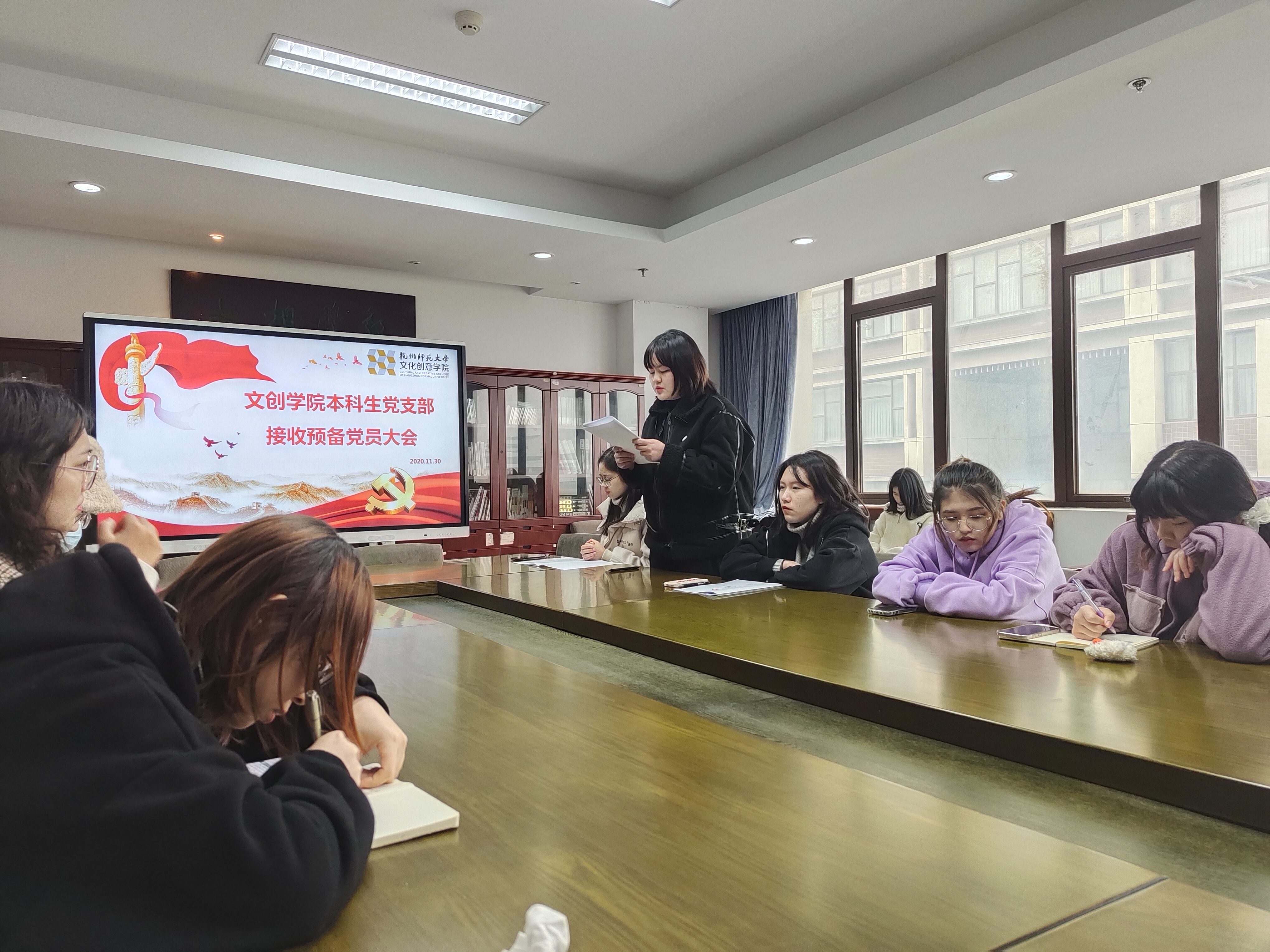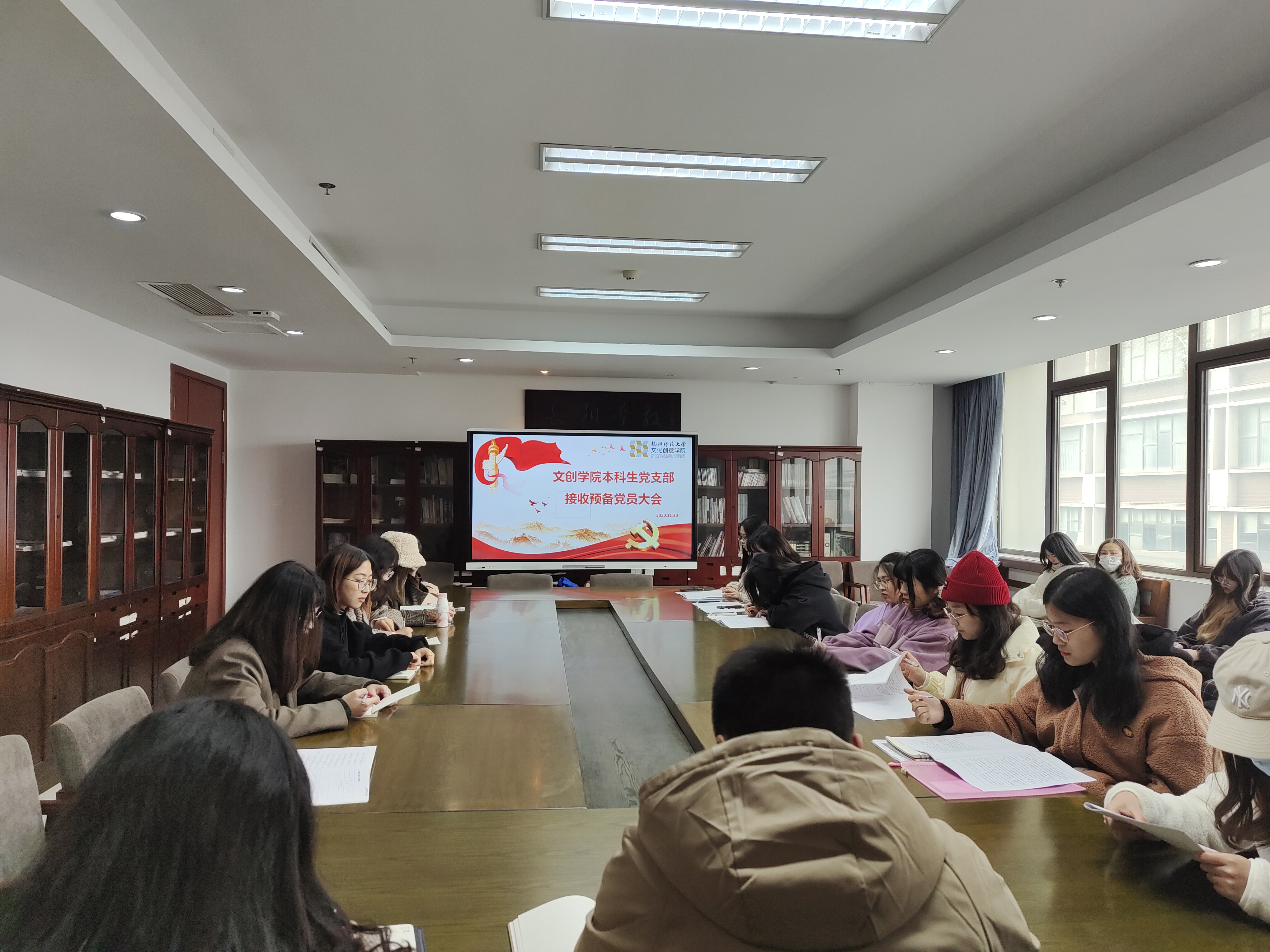 11月30日,文化创意学院本科生党支部在恕园1号楼402召开全体党员大会,会议由支部书记王聪老师主持,讨论接收蔡炜妮等8名同志为预备党员。