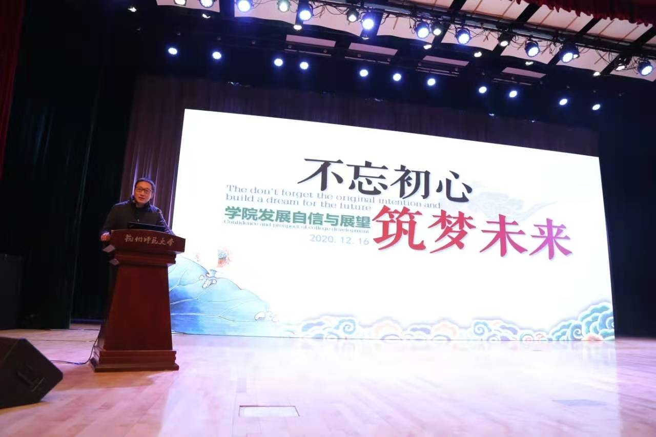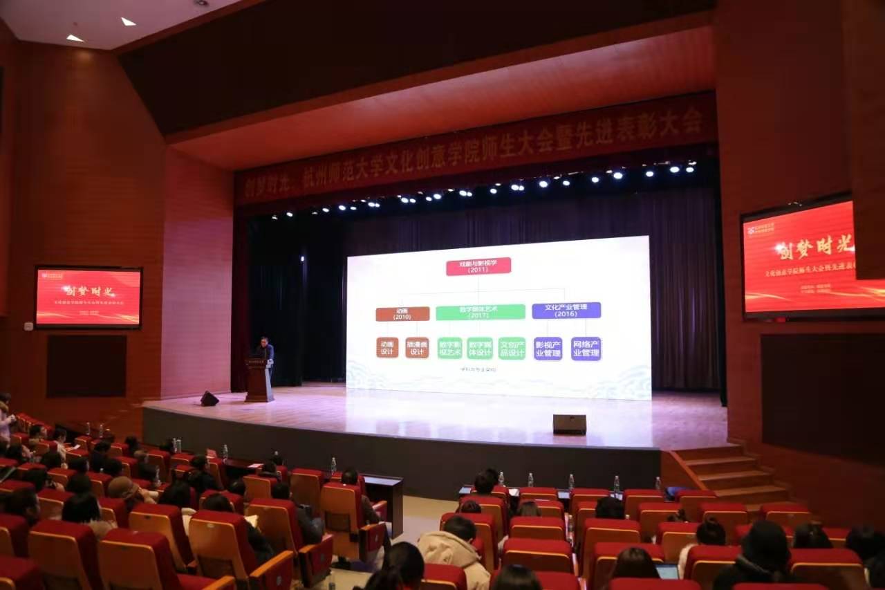 12月16日下午,博彩平台 于恕园7号楼500座隆重举行“创梦时光”文化创意学院师生大会暨先进表彰大会。党总支书记范小春、副院长杨欢耸、副院长郭持华、党总支副书记周微微出席,获奖师生、2020级全体学生以及其他年级各班班级代表参加会议。大会总结回顾了学院成立五年来博彩平台 师生取得的优秀成果,表彰先进个人和集体,并对未来五年的学院发展做了展望。