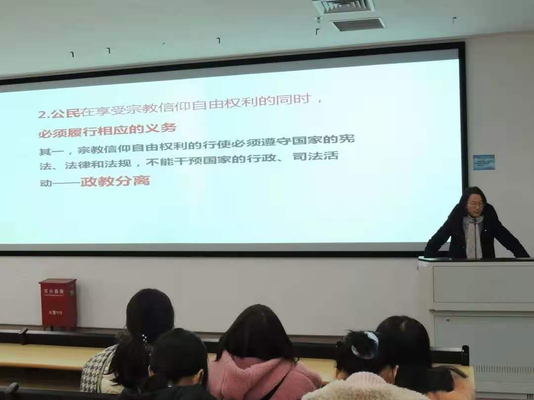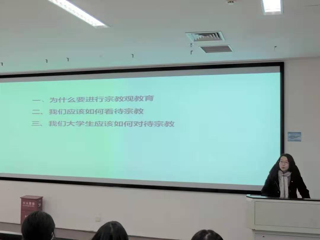 12月17日中午12:30到13:30,马克思主义宗教观学习讲座在恕园31-101举行。本次讲座由辅导员王聪老师主持,马克思主义学院的滕燕萍老师主讲,文创学院2020级学生参与学习。