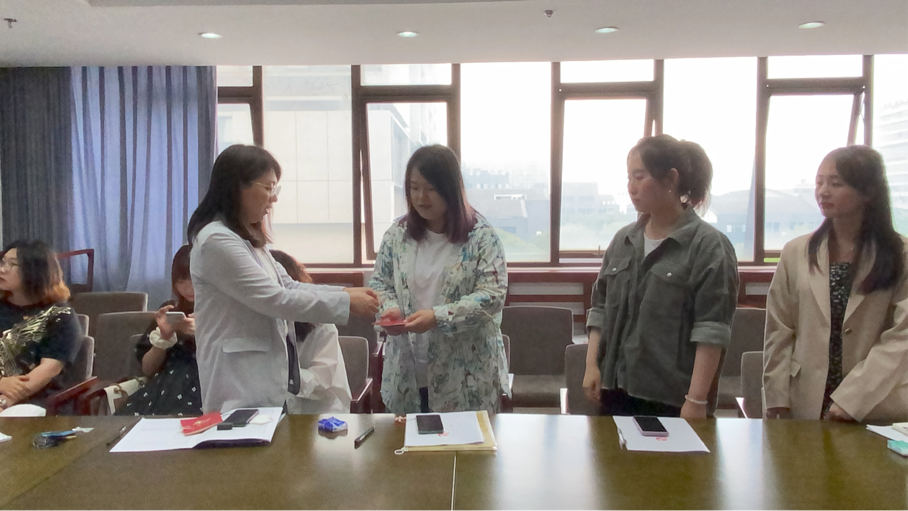 随后,由全体正式党员进行无记名投票,经全体到场的正式党员表决,一致同意李梅梅等4位同志成为中共预备党员,支部书记王斐敏为她们颁发了党章与党徽。