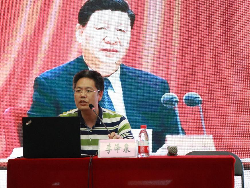 6月23下午,校党史宣讲团成员、校纪委书记李泽泉“百年大党与民族复兴”为博彩平台 师生讲授专题党课。博彩平台 全体师生参加党课。