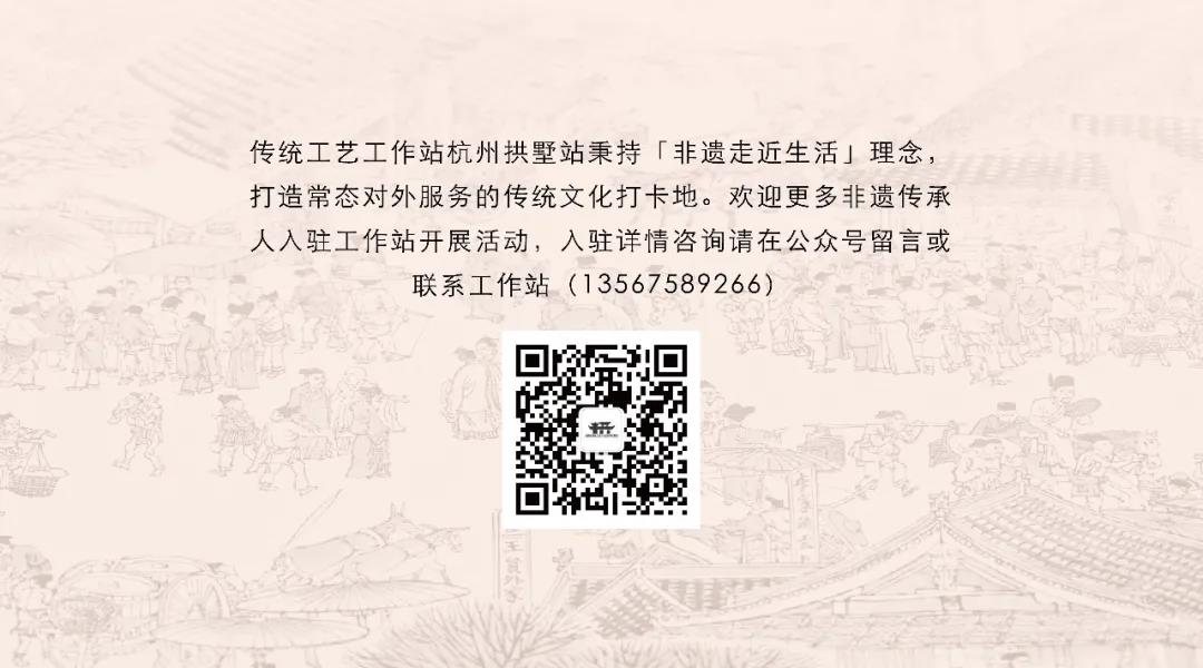 副院长袁瑾就分院的基本情况和分院在社会合作方面的拓展案例做了详细介绍,文化产业管理系系主任沈松华和文创设计系系主任魏榕从学科建设、学生培养、业务实训等方面提出合作建议,期望通过校企合作,加强理论与实践相结合,让学生在实践中成长,同时拓展教学宽度,促进教师持续学习提升教学和研究能力。 接着,双方围绕拱墅站构建的非遗IP研究、非遗研学教育、非遗创新转化和工作站联络交流四大中心展开深入交流,非遗IP研究中心,从传统工艺产品知识产权保护和动漫形象创新等方面,推动传统文化适应当下社会;非遗研学和教育中心,从研习课程开展和教育素材积累等方面,推动传统文化融入研培体系;非遗创新转化中心,从理念创新、功能创新、设计创新、材料创新等方面,推动传统工艺迭代更新;工作站联络交流中心,从研讨会、分享会等方面,推动各地传统工艺工作站之间的互动交流。四大中心功能有效串联了“产、学、研、创”各个环节,为校企合作、产学研创融合提供了更多思路。 通过友好交流,双方就大学生创新创业实践、产业基地建设等方面进行探讨,并初步达成合作意向。双方将发挥各自优势,共同助力传统工艺振兴和杭州文化创意产业发展。 / 工作站地址 /
