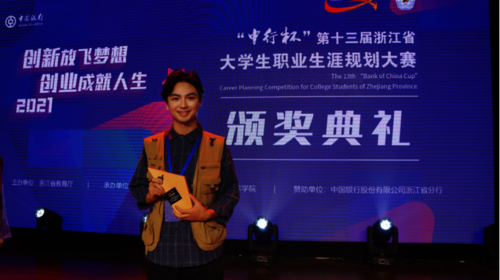 本届大赛中,李金龙同学以《一位纪录片导演的成长之路》为题,展示自己立志成为一名优秀的纪录片导演的职业梦想,荣获职业规划类(本研组)一等奖,并被授予“2021年浙江省最佳职业规划之星”荣誉称号。周微微、王聪、陈孟伟三位老师被评为“优秀指导教师”。