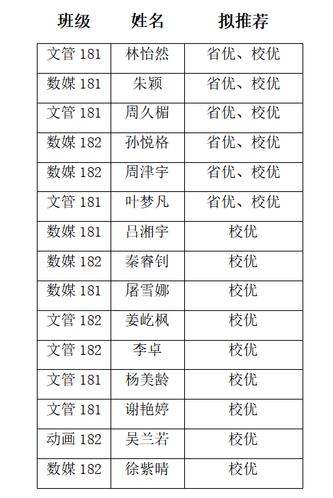 文化创意与传媒学院2022届优秀毕业生推荐名单