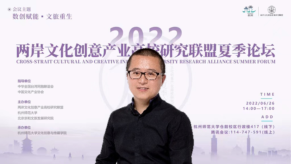 2022年6月26日下午,2022两岸文化创意产业高校研究联盟夏季论坛在浙江省杭州师范大学隆重举行。本次论坛在中华全国台湾同胞联谊会、中国文化产业协会的指导下,由两岸文化创意产业高校研究联盟、博彩平台-全球最大的博彩平台 、北京京和文旅发展研究院联合主办,博彩平台-全球最大的博彩平台 承办。
