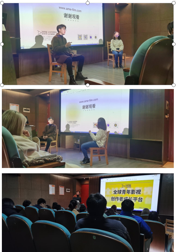 本次讲座赵鸣昊老师主要从AME核心团队搭建、所获投资和支持、当下电影行业现状、行业痛点以及AME影视计划的核心追求等方面讲述了AME影视计划将如何帮助同学们更好地创作,走出当下行业困境。