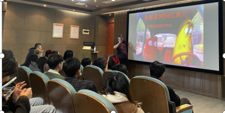 本年度活动邀请了中国数字艺术协会秘书长、日本手塚动画外聘顾问李洋老师、浙江省动漫产业学会理事会理事刘柱老师以及中国著名插画与绘本画家、浙江人民美术出版社原首席编辑江健文老师,他们都从各自的专业领域结合高校动漫专业学生的特点进行学术性探讨和交流,取得了良好的学习效果。其中李洋老师有着20多年海内外从业经历,曾从事过游戏策划、动画杂志编辑、制片管理、动画编剧等职业,后进入院校担任讲师、院长,出版教材等,对高校动漫专业状况较为熟悉。4月7日下午,李洋老师在“动画人的养成”讲座中,结合个人成长过程,全方面让学生了解动画、游戏、影视行业,同时了解国内相关政策,以及中国的文化出海政策。