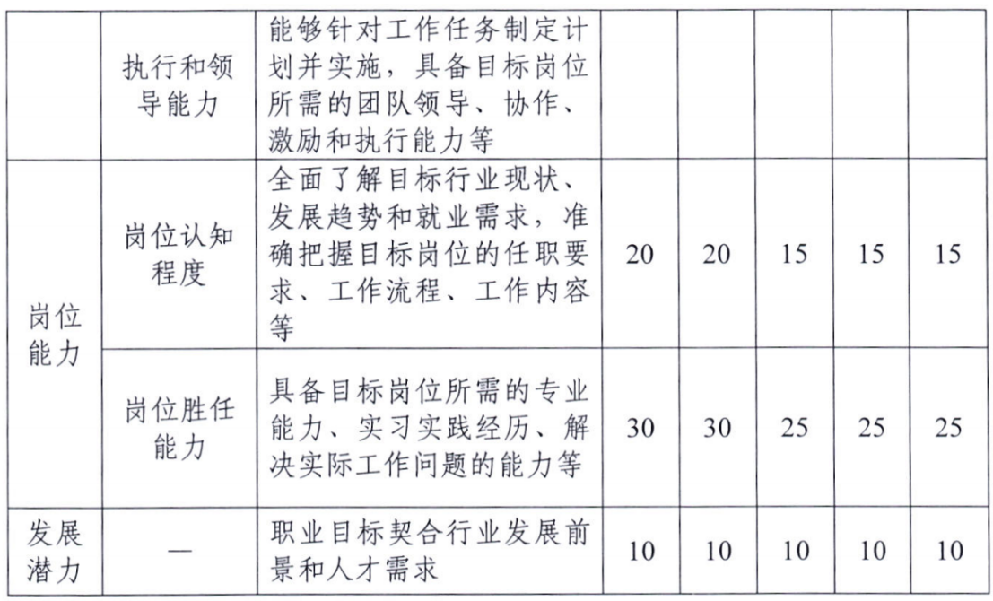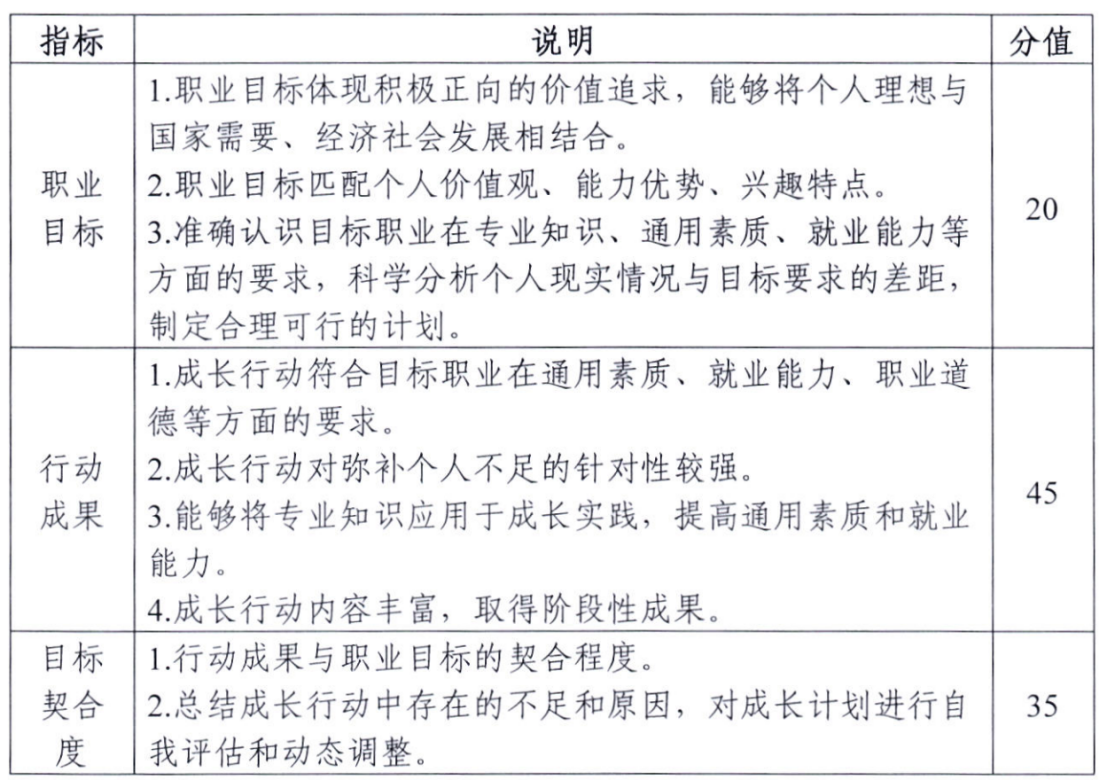 考察学生职业发展规划的科学性和围绕实现职业目标的成长过程,通过学习实践持续提升职业目标的达成度,增强综合素质和能力。