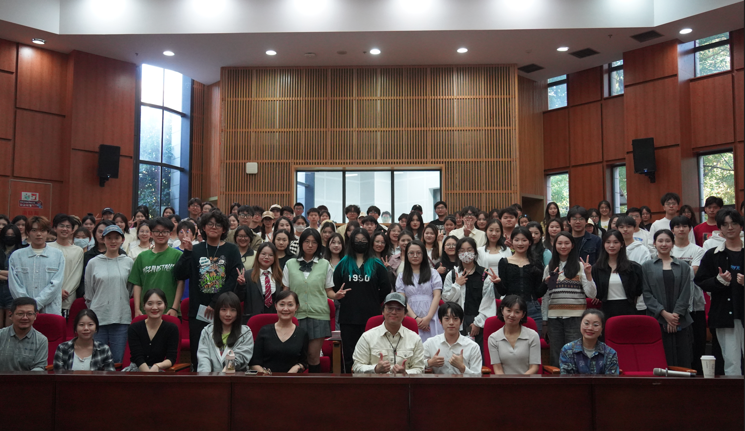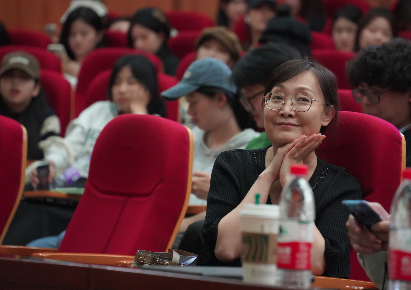 此次活动由一堂生动的公开课开始,皇贞季老师从国内译制片《普通一兵》、《虎口脱险》等经典配音电影引出“生活的艺术:让配音更有‘戏路’”这个话题,给在场的同学们详细讲解了配音艺术的难点不仅在于如何翻译的恰到好处,更需要与画面贴合、口型一致。讲座中,皇老师与同学们分享了其在创作过程中的一些趣事,当谈到对配音这门艺术的初心与坚持时,皇老师表示“热爱”是从事配音的开始也是他一路坚持的原因。
