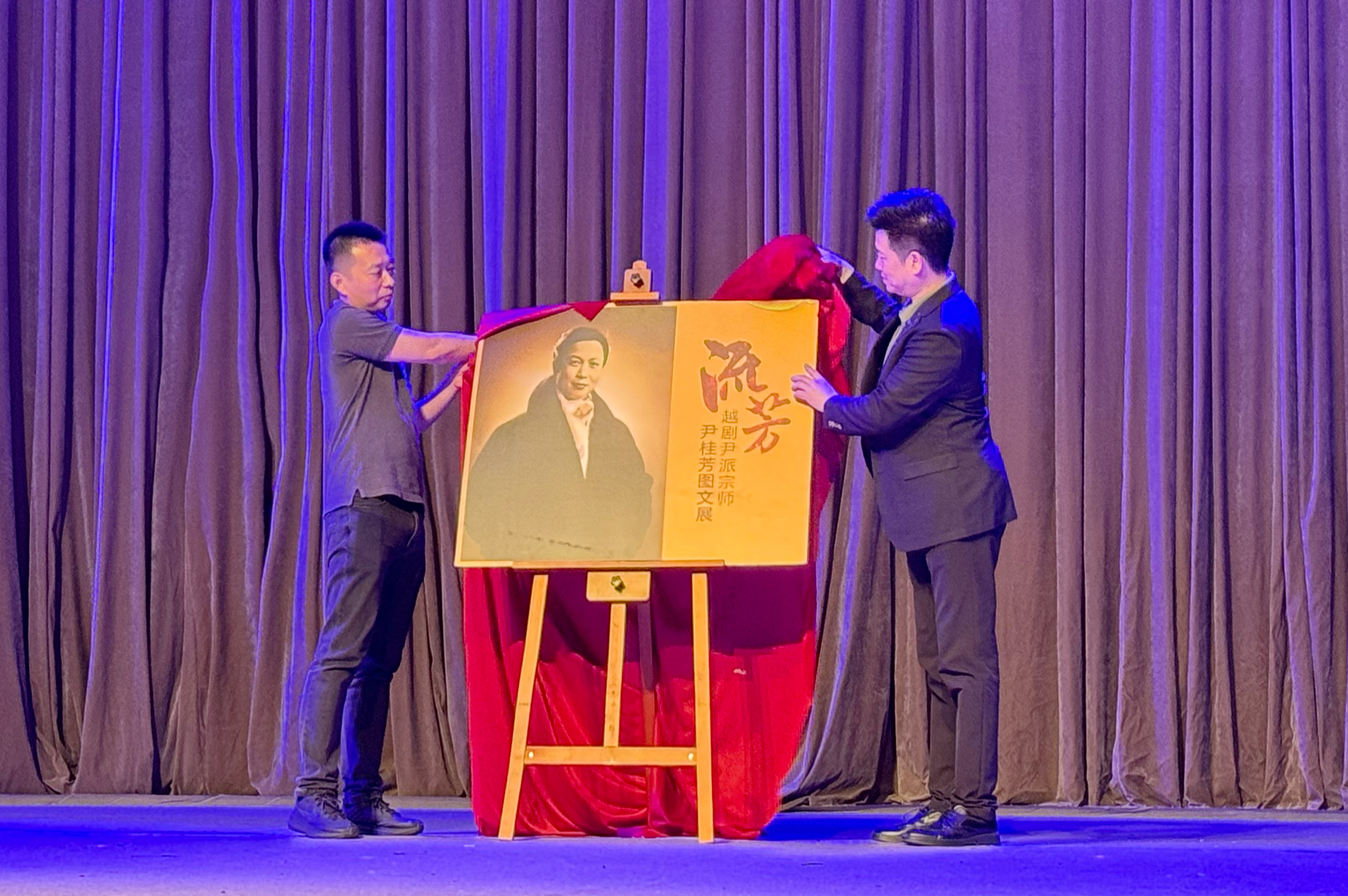 赵志刚、陈孟伟为越剧尹派宗师尹桂芳图文展活动揭幕。