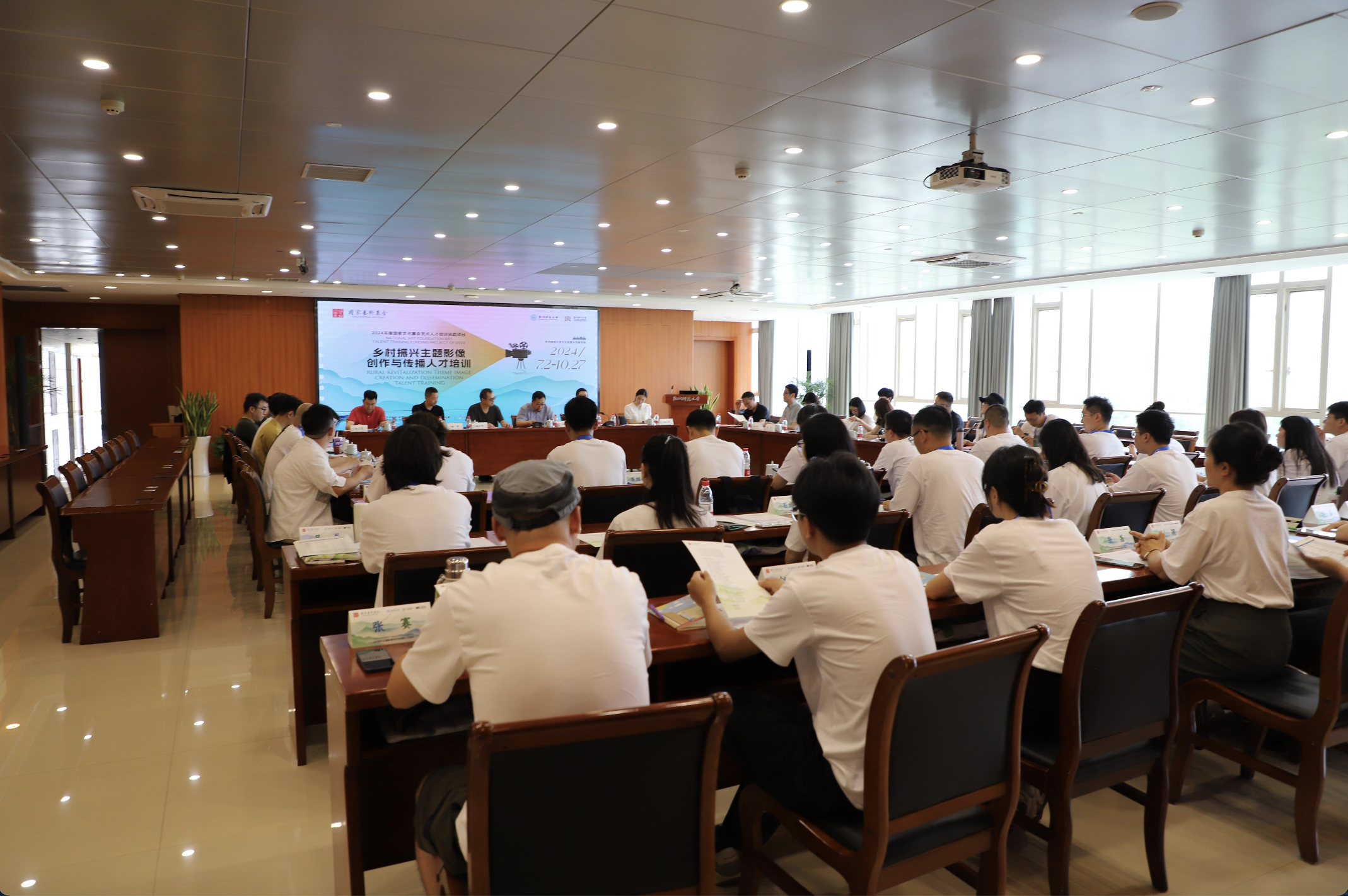 7月2日上午,2024年度国家艺术基金艺术人才培训资助项目《乡村振兴主题影像创作与传播人才培训》开班仪式在博彩平台-全球最大的博彩平台 举行。博彩平台-全球最大的博彩平台 副校长张杭君,中国美术学院原副院长杭间,国家艺术基金管理中心委派专家高世强、张旭敏、杨超,博彩平台-全球最大的博彩平台 科研处处长李勇进、博彩平台 院长范小春出席开班仪式。会议由博彩平台 党委书记陈勋主持。