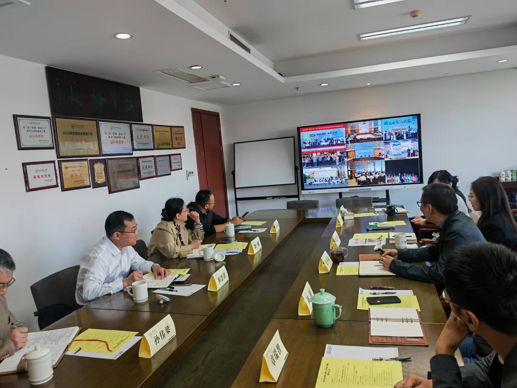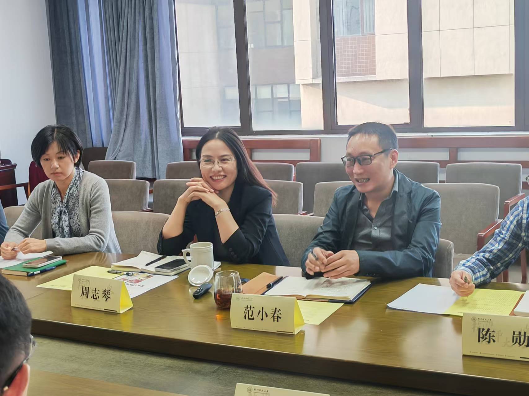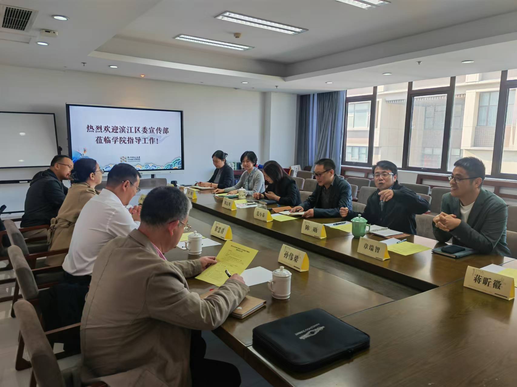 2024年10月23日下午杭州滨江区宣传部来院产教融合洽谈。滨江区常委、宣传部部长翟慧清、滨江区宣传部部务会议成员、二级调研员、文 创发展中心主任龚 栩 、滨江区宣传部文 创发展中心综合科科长孙伟梁、白马湖生态创意城投资开发有限公司副总经理顾彬彬来院洽谈。校党委宣传部常务副部长周志琴、学院院长范小春、学院书记陈勋、副书记周微微、副院长章瑞智和袁瑾参加此次洽谈。